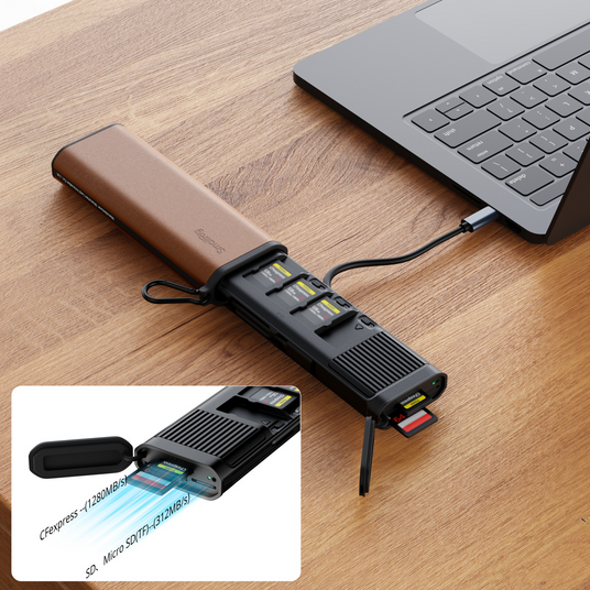The SmallRig 5361 is a compact, all-in-one solution for professional photographers and videographers using Sony cameras with CFexpress Type A cards. This multifunctional device combines a blazing-fast USB 3.2 Gen 2 card reader with intelligent onboard storage and innovative tracking features. Transfer data from CFexpress Type A/B, SD, and Micro SD cards simultaneously at speeds up to 10Gbps (1250MB/s) – move a 1GB file in just 2 seconds. An aluminum heatsink and active cooling system prevent thermal throttling during extended transfers. A dedicated power input port ensures stable, uninterrupted performance even during intensive workflows. The built-in AirTag slot integrates seamlessly with Apple’s Find My network, letting you locate your valuable cards anywhere. Inside, organized slots securely hold up to 4x SD, 2x Micro SD, and 4x CFexpress Type A (or 3x CFexpress Type B) cards, with smart status toggles to instantly see which slots are full or empty. Note: CFexpress Type A is compatible only with Sony models; for Canon, Nikon, and Panasonic, select CFexpress Type B versions.
