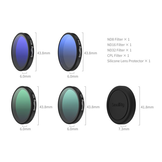 SmallRig ND Filter Kit for DJI Osmo Action 6 5895 is specifically designed for the DJI Osmo Action 6. Featuring advanced multi-layer coating technology, this filter kit achieves precise light reduction across all wavelengths while maintaining exceptional color accuracy. The comprehensive set includes ND8, ND16, ND32, and CPL filters, providing ideal exposure control for diverse shooting scenarios and delivering richer, more vibrant imagery.