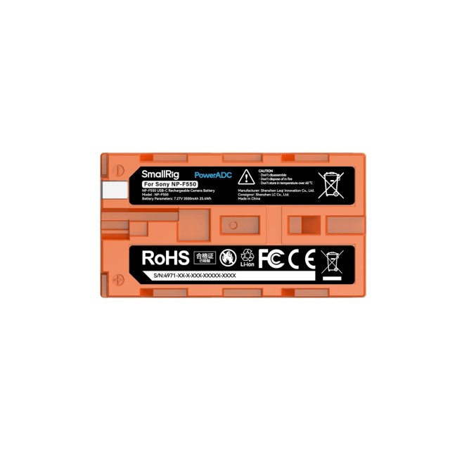 SmallRig NP-F550 USB-C Rechargeable Camera Battery comes with a USB-C port to be charged via a power bank, power strip, car charger, or dedicated charger. With high-current charging (5V 2.3A) and 3500mAh nominal capacity, you can make the battery full in 3 hours and run equipment for a longer time. Highly compatible and versatile, this item also powers up such rigs as a camera, LED video light, monitor, slider, etc. The visually distinctive battery features a fire-resistant, durable ABS and PC shell, frosted to have a delicate touch.