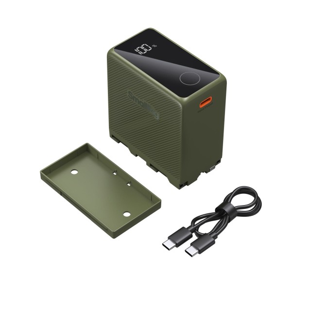 NP-F970-type battery with a 10500mAh/76.65wh capacity for extended usage, USB-C and USB-A connectivity for versatile charging, USB-C PD 36W fast charging support for a rapid 3.5-hour full charge, as well as touch buttons and display screen for easy battery level monitoring. Available from 21. 05. 2024.