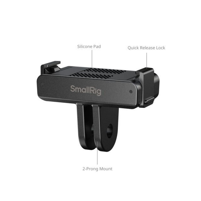 The base features a 2-prong mount, ensuring compatibility with various SmallRig accessories, including suction cup mounts (ID 4235), crab-shaped clamps (ID 4102B), selfie sticks (ID 5403), and neck mounts (ID 5126).
