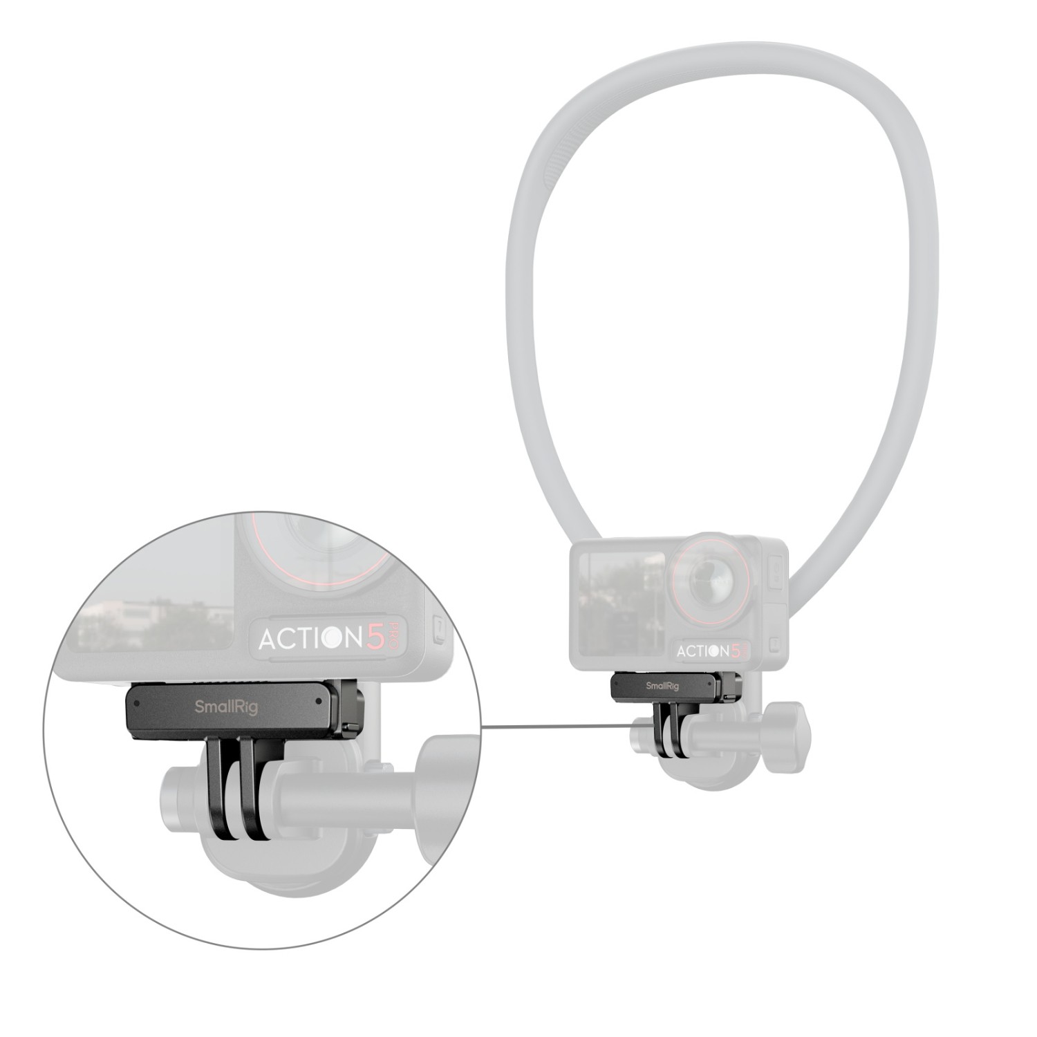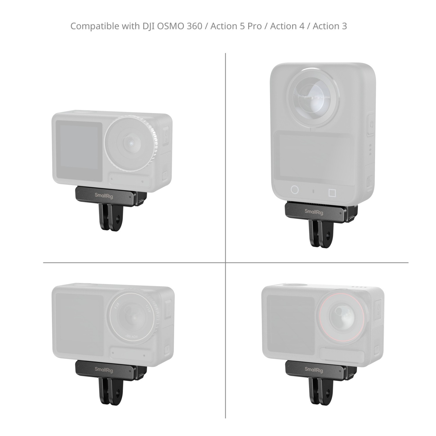 SmallRig Quick Release Mount Adapter for DJI Osmo 360 / Action 5 Pro / 4 / 3 5813 is designed for outdoor shooting scenarios that require rapid camera mounting and dismounting, particularly when changing batteries or repositioning. Specifically engineered for DJI Osmo 360 / Action 5 Pro / 4 / 3 cameras, its quick release mounting system allows for instant attachment and detachment, significantly enhancing workflow efficiency.