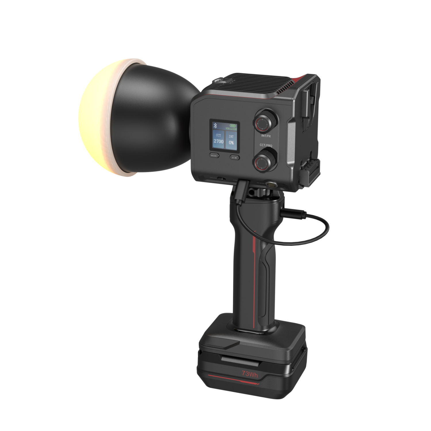 The light offers versatile power options, allowing for wireless operation with either V-mount or NP-F970 batteries. It can also be charged via a USB-C port using accessories such as a power handle, PD power bank, or charging cable, as well as an AC to DC power adapter. Contains SH73 Grip Handle Designed Powerbank, which can support up to 45 minutes of runtime at maximum output, ensuring uninterrupted shooting with quick battery swaps.