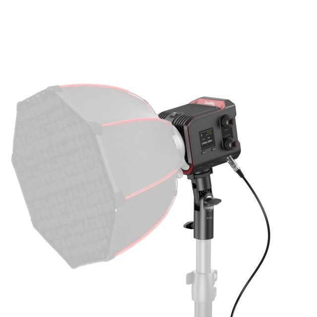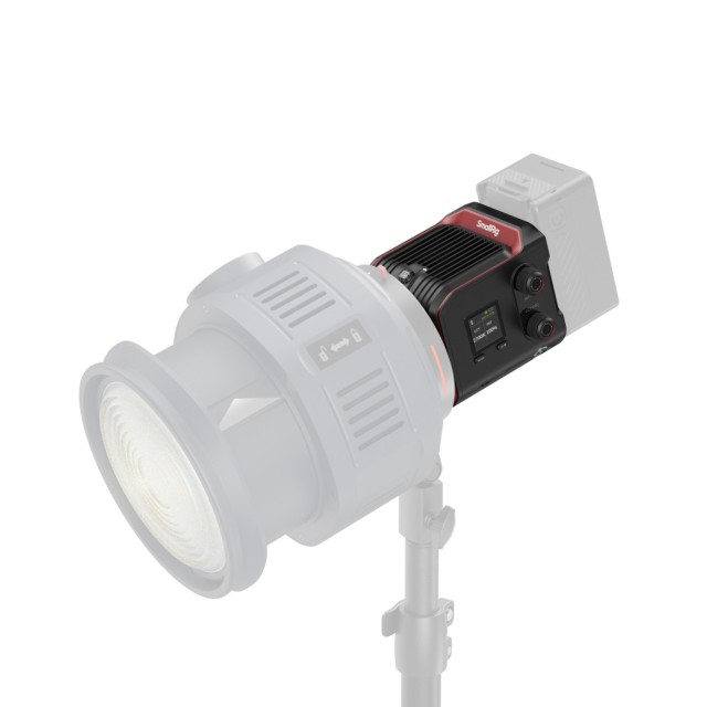 Control options include wireless operation through the SmallGoGo app or DMX wired control with a separate adapter. Manual adjustments are facilitated by a 1.44-inch LCD color screen and two independent knobs.