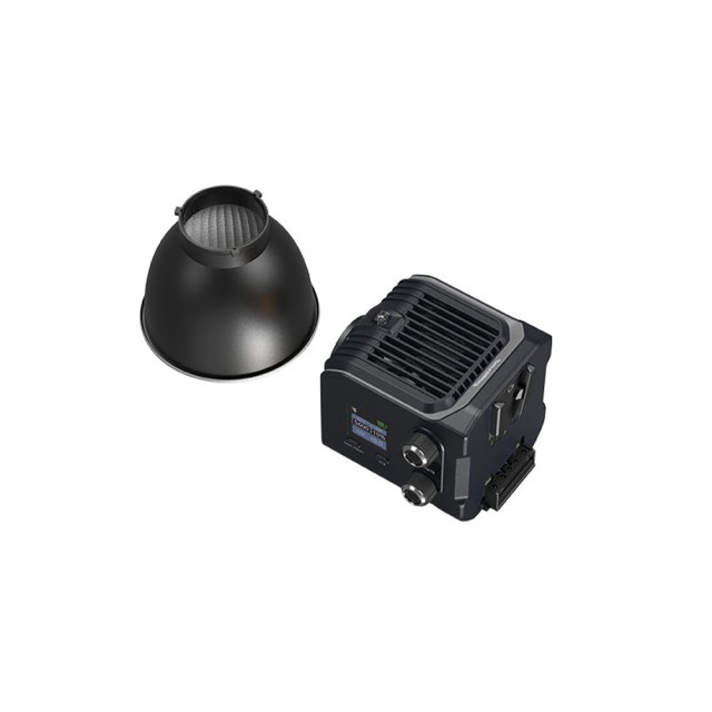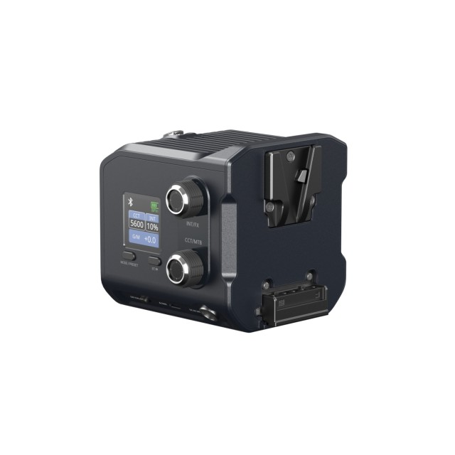 The device offersversatile power options - both wireless and wired - allowing for uninterrupted shooting. It can be charged via a DC power adapter with up to 110W input, or via a USB-C port with up to 110W input for charging with accessories such as the SmallRig 73Wh Power Grip, PD power banks, PD chargers, etc. Two NP-F970 batteries can be connected to the light. Additionally, the light includes a V-lock base that is compatible with standard V-mount batteries.