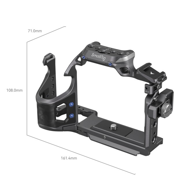 SmallRig "Rhinoceros" Cage Kit for Sony Alpha 7R V / Alpha 7 IV / Alpha 7S III 4308 is designed to attach accessories and protect the camera and HDMI port. The cage secures the camera firmly via a locating pin, a 1/4"-20 screw, and an M2.5 screw together. It features a clean streamlined design that gives full access to the top buttons. The HDMI cable clamp is tightened via a flat-head screw, protecting the interfaces to ensure stable signal transmission.