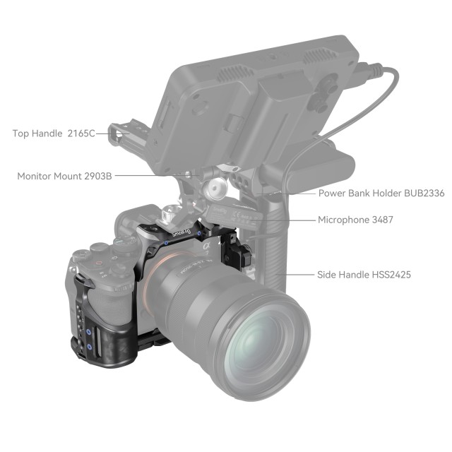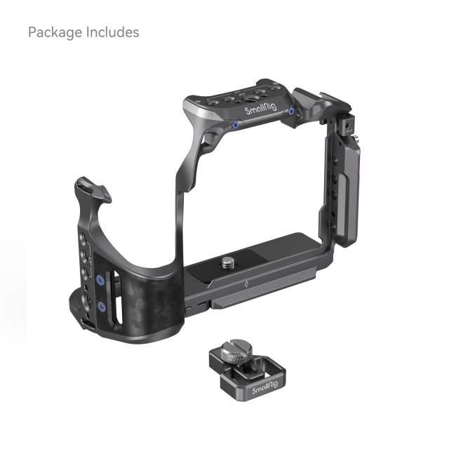 SmallRig "Rhinoceros" Cage Kit for Sony Alpha 7R V / Alpha 7 IV / Alpha 7S III 4308 is designed to attach accessories and protect the camera and HDMI port. The cage secures the camera firmly via a locating pin, a 1/4"-20 screw, and an M2.5 screw together. It features a clean streamlined design that gives full access to the top buttons. The HDMI cable clamp…