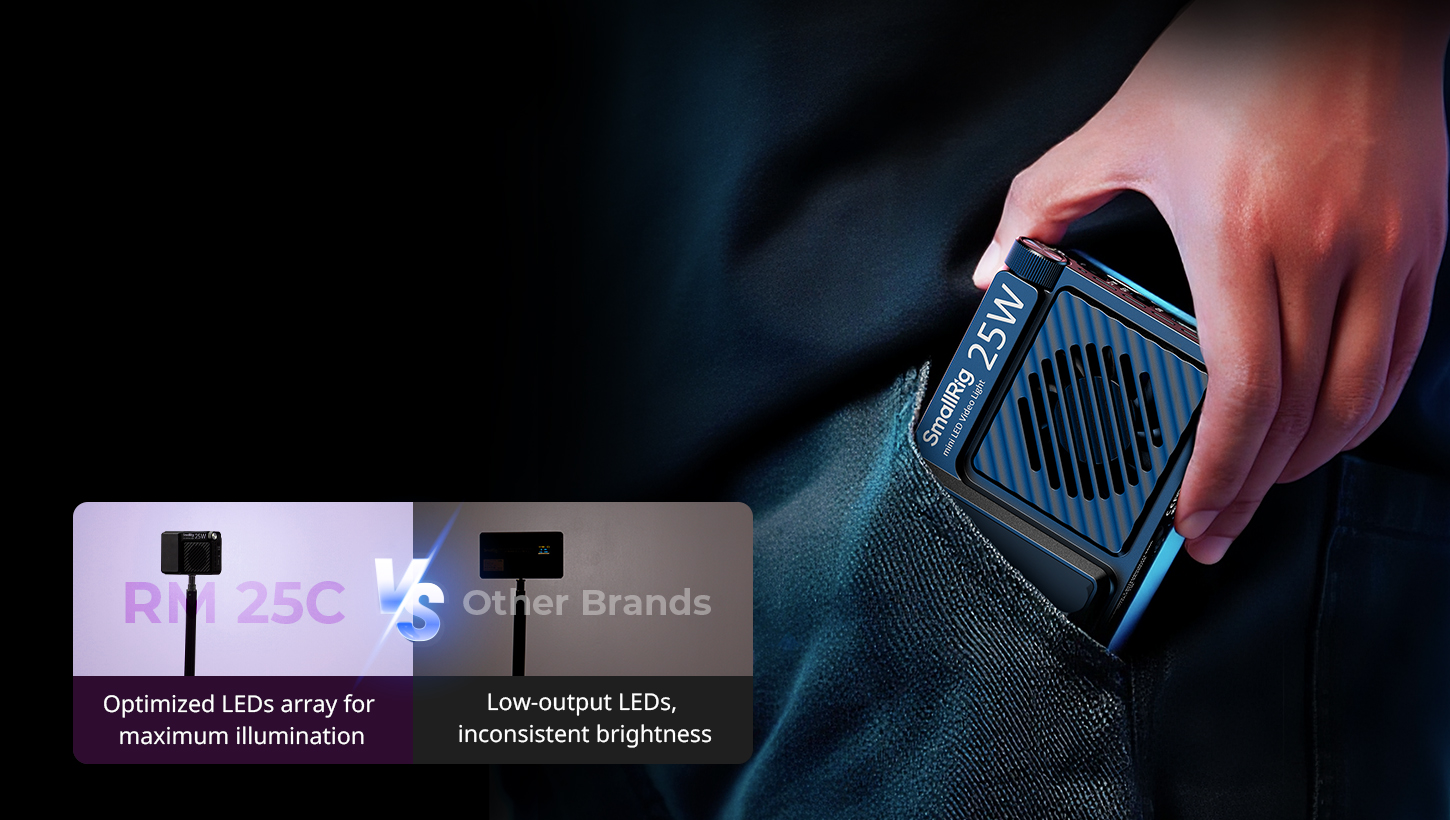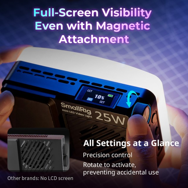 Compact yet powerful: Measures 113 x 74 x 29mm (4.4 x 2.9 x 1.1"), weighing 255g, offering an impressive 3070 Lux @0.5m (5600K) with 25W power, perfect for vloggers, outdoor shooters, and especially solo creators.