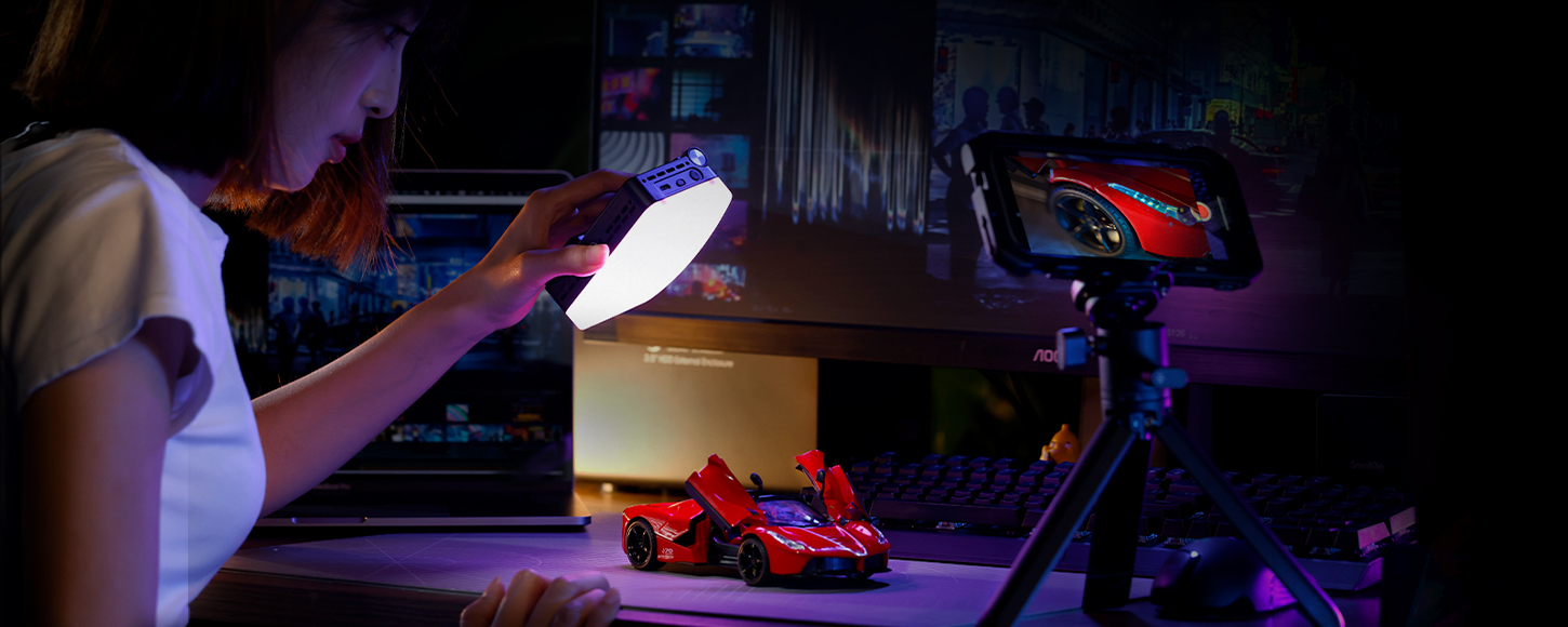 Versatile RGB+CCT lighting: Features CRI 96, TLCI 99, adjustable bi-color temperatures from 2500K to 10000K, 36000+ colors, and 14 built-in lighting effects. Ideal for still life, food photography, and creative portrait lighting.