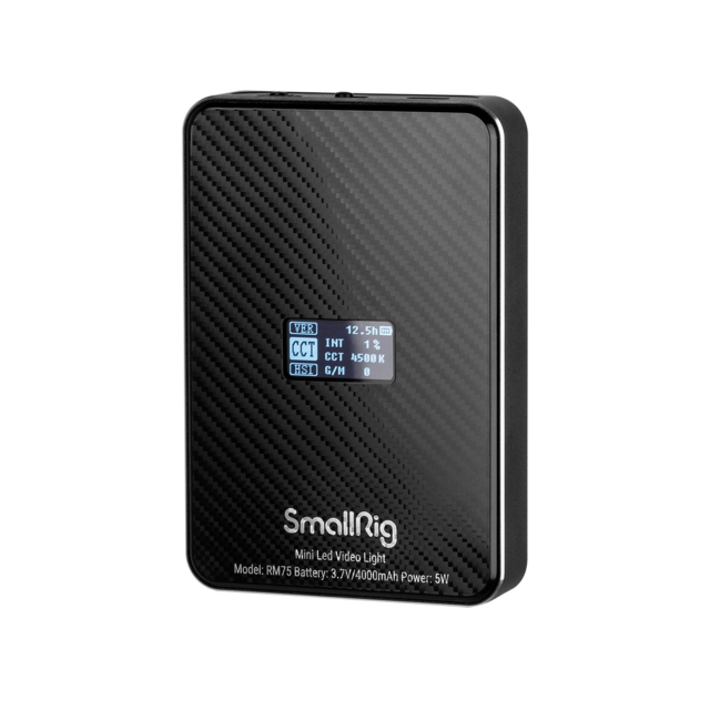 SmallRig RM75 Magnetic Smart LED Light 3290 is SmallRig's first App-enabled, full-spectrum LED light characterized by remote control and four-sided magnetism. It has 7 function modules, namely CCT, HSI, RGBW, FX, color atlas, color picker, and light effect pickup, to make for more interesting videoing. The eye-catching LED light features a full metal frame and carbon fiber texture, as well as a unique four-sided magnet design that allows adhering to most metal surfaces and supports a multi-light setup, exploring infinite creativities. 4000mAh large capacity battery together with PD fast charging enable precise control of 15 light effects, 2500K-8500k color temperature, and 36000 colors, making it a hassle-free way of long-time shooting.