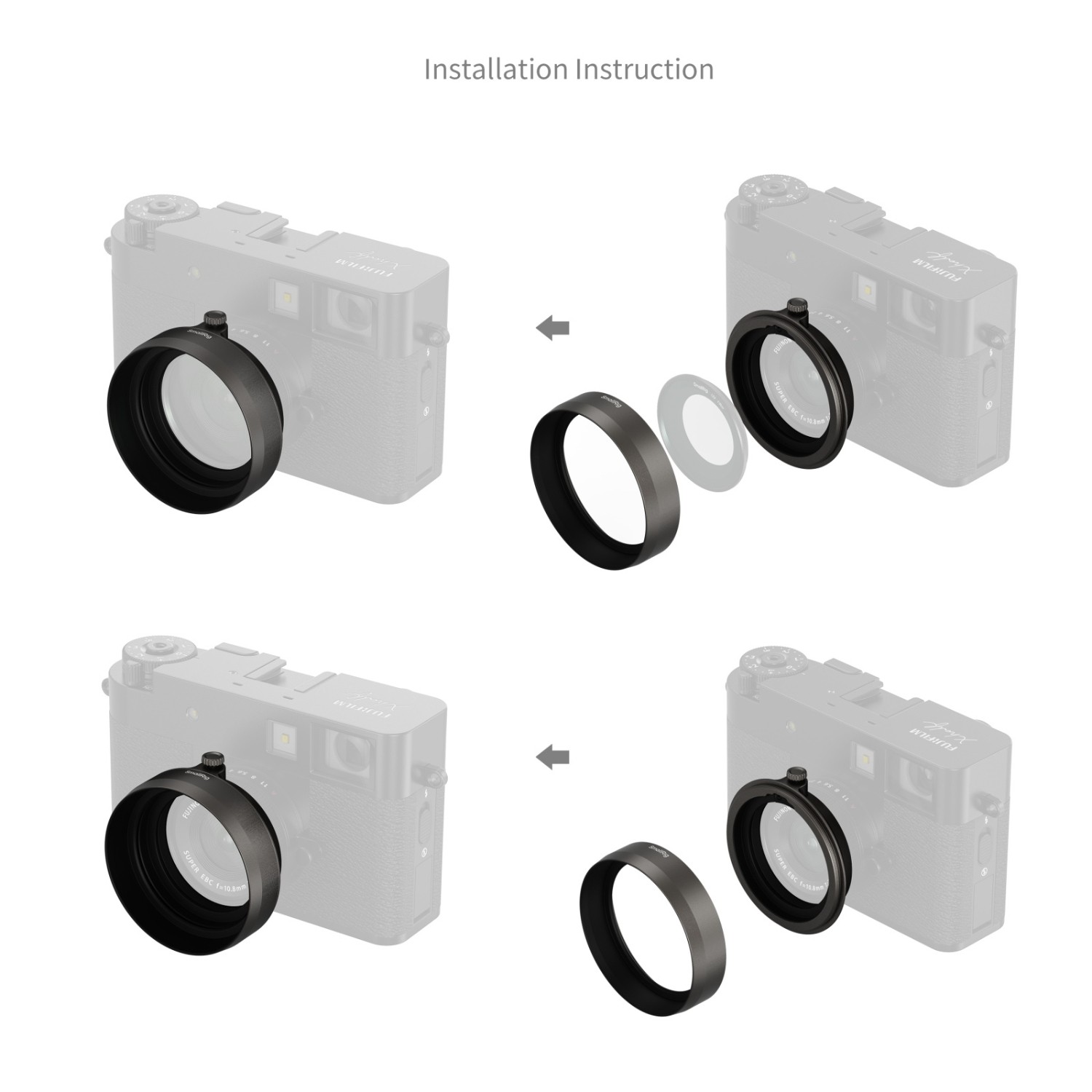 The silver and charcoal silver version has a black paint finish on the interior to eliminate light reflections that cause glare. This hood is fully compatible with SmallRig's UV filters (ID 5214, 5393) and VND filters (ND2-ND5) (ID 5225, 5391) designed for the FUJIFILM X half camera.