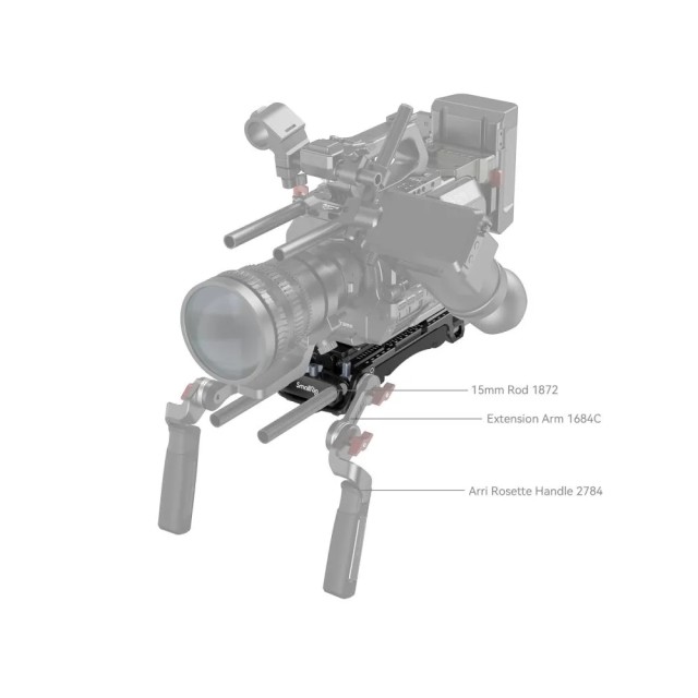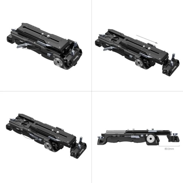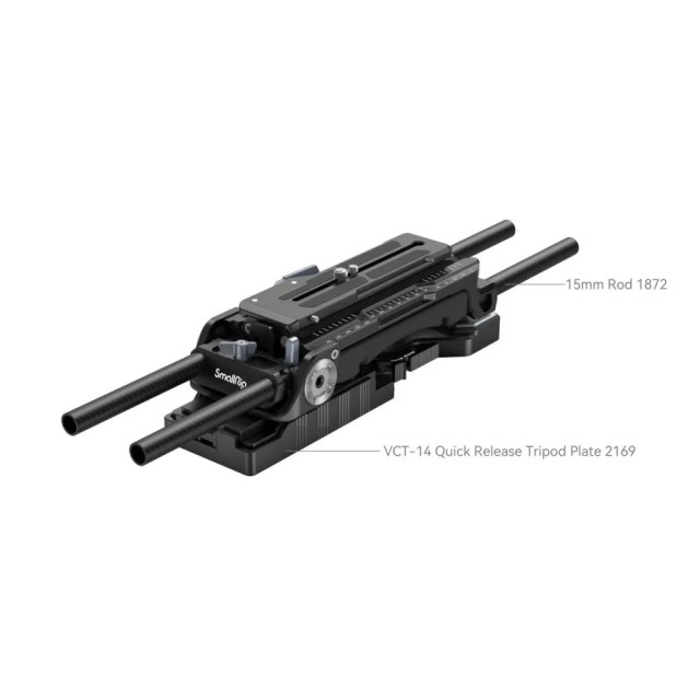 Universal Shoulder Rig (Compatible with Sony VCT-14 Plate) 2837C is designed for Sony VCT-14 quick release baseplate. It consists of a SmallRig quick release plate on the top that attaches camera, and a Manfrotto 501 quick release plate connecting a shoulder pad. 2837B allows for quick switch between shoulder shooting, handheld shooting, and tripod shooting. It features a standard M6 ARRI rosette mount on both sides, which is compatible with the original control handle of 1810 or FX9 machines, as well as dual rod systems at front and rear ends, 15mm in diameter and 60mm spaced apart. Particularly, the front rod clamp can be adjusted vertically 27mm to ensure 85mm spacing between lens center and rod center for such camera as FX9, FS5, URSA MINI, CANON C300, etc. 2837B also helps balance your camera on your shoulder or rig and install follow focus system and matte box, thanks to the built-in Manfrotto 501 quick release plate sliding 0-80mm forward, and the SmallRig quick release plate sliding 0-120mm backward. You do not have to first remove follow focus system or matte box as the front rod system goes together with the Manfrotto 501 plate. More features of 2837B include 1/4"-20 threaded holes and 3/8"-16 threaded holes in the V-shaped bottom plate, which support various others quick releasee plates and tripods. The item comes with a new silicone shoulder pad, ergonomically designed to human shoulders to feel soft and comfortable. In addition, there is a built-in flat wrench for easy access.
