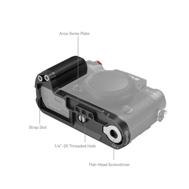SmallRig Silicone L-Shape Grip for FUJIFILM X-T50 (Black) 4783 is designed to improve the camera grip. The L-Shape Grip mounts to the camera with a 1/4"-20 screw at the bottom, and the built-in silicone pads prevent scratches. The texture and color of the grip perfectly match with FUJIFILM X100VI / X100V. The built-in Arca-Swiss quick-release baseplate allows for easy and fast Arca-type tripod assembly and disassembly. Four 1/4"-20 threaded holes at the bottom to attach Manfrotto-type plates and tripods. Strap slot for Wrist Strap (ID: 3848). The built-in flat wrench on the bottom for easy accessory assembly and disassembly. The grip comes with the exclusive hot shoe cover imprinted with the “FUJIFILM” sound wave and the year of foundation as our tribute to FUJIFILM. It also comes with a shutter release button to ensure a soft and comfortable finger touch.