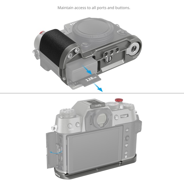 SmallRig Silicone L-Shape Grip for FUJIFILM X-T50 (Charcoal Silver) 4712 is designed to improve the camera grip. The L-Shape Grip mounts to the camera with a 1/4"-20 screw at the bottom, and the built-in silicone pads prevent scratches. The texture and color of the grip perfectly match with FUJIFILM X-T50. The built-in Arca-Swiss quick-release baseplate allows for easy and fast Arca-type tripod assembly and disassembly. Four 1/4"-20 threaded holes at the bottom to attach Manfrotto-type plates and tripods. Strap slot for Wrist Strap (ID: 3848). The built-in flat wrench on the bottom for easy accessory assembly and disassembly. The grip comes with the exclusive hot shoe cover imprinted with the “FUJIFILM” sound wave and the year of foundation as our tribute to FUJIFILM. It also comes with a shutter release button to ensure a soft and comfortable finger touch.