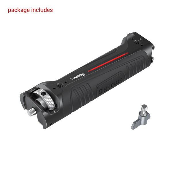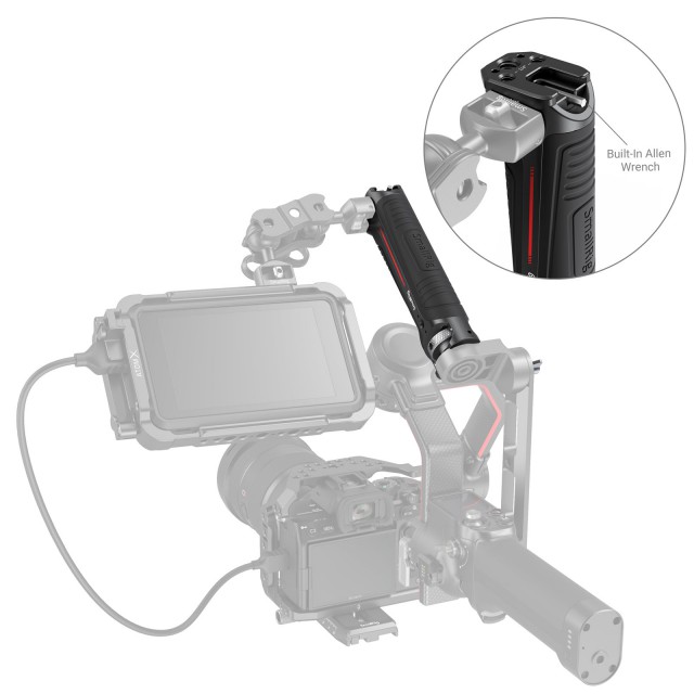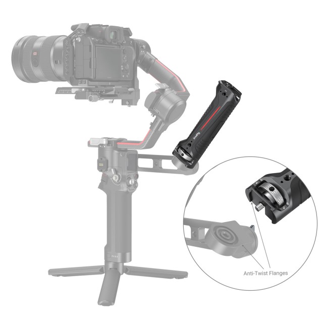 SmallRig Sling Handgrip for DJI RS 2 and RSC 2 Gimbal 3161 is specially designed to reduce arm fatigue when shooting at a low angle with the gimbal and provide accessory mounting points. The handle secures to the DJI R Briefcase Handle with a 1/4”-20 screw and adopts a raised edge to prevent twists. There are two 1/4”-20 threaded holes, one ARRI 3/8”-16 locating hols, and one cold shoe mount on the top of the handle for mounting Monitor Mount 2903 or 2905.