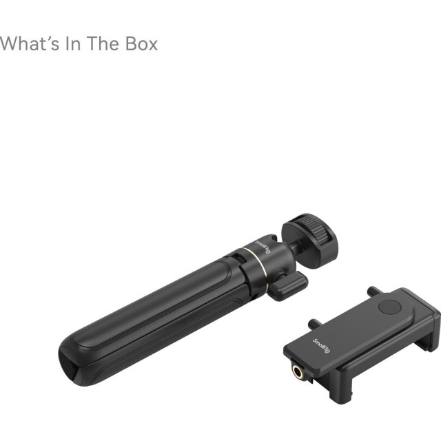 SmallRig Smartphone Vlog Tripod Kit VK-20 Advanced Version 4364 is composed of a tabletop telescoping tripod and a smartphone holder. This compact and portable kit has an impressive load-bearing capacity of 1.5kg / 3.3lb. One 1/4"-20 screw attaches the tripod to the smartphone holder which has dual cold shoe mounts for a microphone, LED video light, etc. The holder features a unique easy-to-retract design for swift smartphone attachment and removal. The 360-degree grip rotation allows a secure and quick switch between portrait and landscape orientations, while dual cold shoe mounts allow for the attachment of compatible accessories.
