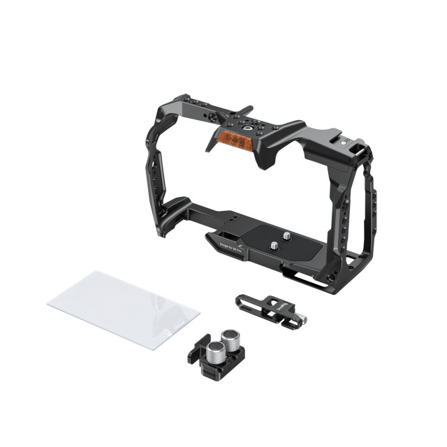 SmallRig Standard Accessory Kit for BMPCC 6K Pro 3298 provides a rugged aluminum-alloy rabbit cage with multiple 1/4"-20 threaded holes that support additional camera accessories. The kit features a built-in T5 SSD clamp and USB-C cable clamp, which can be further locked with a knob to prevent accidental disconnection during shooting. Its two tempered films can be easily pasted onto the screen via electrostatic adsorption to protect the camera.