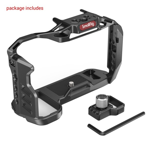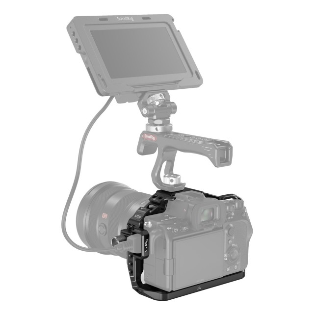 SmallRig Standard Cage Kit for Sony Alpha 7S III 3180 locks the camera firmly via one 1/4”-20 screw on the bottom and one M2.5 screw on the side. The M2.5 screw needs to pass through the shoulder strap holes on the side of the camera. The cage 3065 features multiple standard mounting points and gives you full access…