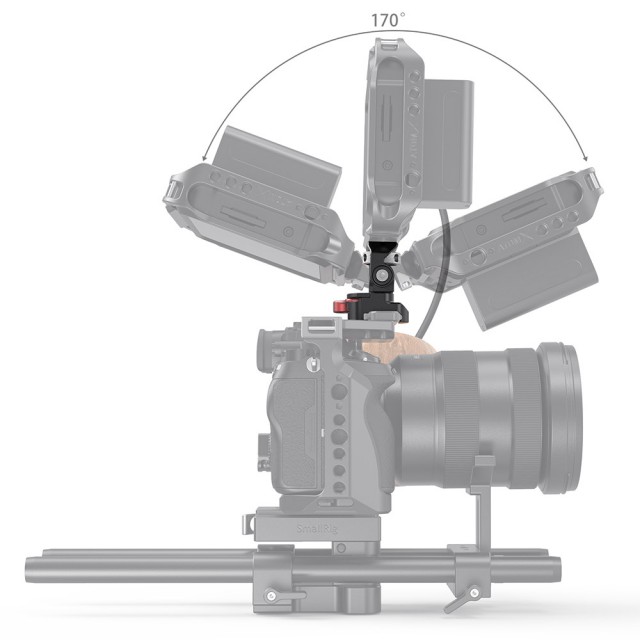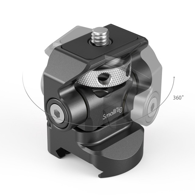 SmallRig Swivel and Tilt Adjustable Monitor Mount with NATO Clamp Mount 2906 is designed to hold your monitor onto the camera cage or other mounting system via NATO clamp. It features 1/4”-20 screw on the top for monitor, light, or microphone. The holder enables to swivel 360° sideways and tilts 170° with a free stop in any position. The tightness of each axis is adjustable via the Allen wrench. The robust mount is CNC-Machined Aluminum and can support 5” and 7” monitor up to 1.5kg. The swivel and tilt mount has protective rubber padding on top and includes an Allen wrench for tightening the mounts for further security.