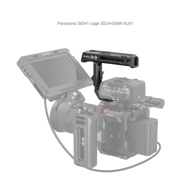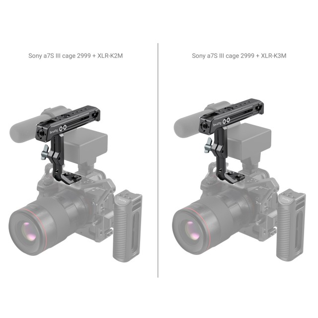 SmallRig Top Handle for Sony XLR-K1M / K2M / K3M and Panasonic DMW-XLR1 Adapter 3082 is designed to hold the camera when equipped with the XLR Microphone adapter as well as provide accessory mounts. The handle is secured to the top of the camera cage via two captive 1/4"-20 screws to prevent twisting and can be moved upwards or downwards by up to 25mm through a knob to fit XLR Microphone Adapter of different heights.