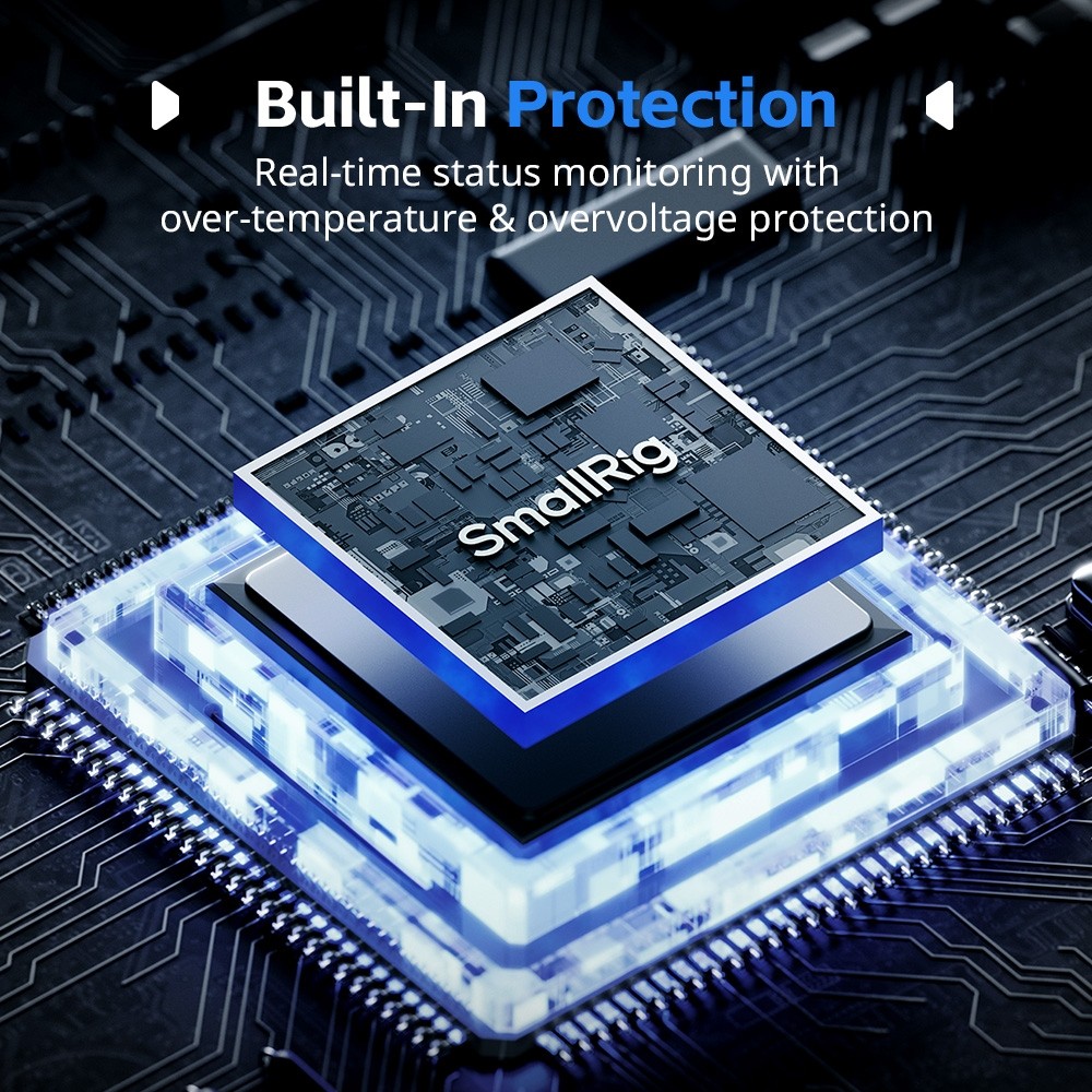 Intelligent circuitry offers multiple safety protections, including over-temperature and over-voltage safeguards. It monitors temperature and voltage, automatically slowing down charging during overheating, cutting off power in case of overvoltage, and employing trickle charging near full capacity to preserve battery health.