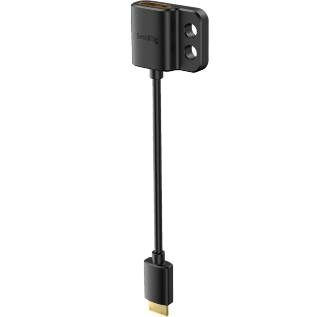 SmallRig Ultra Slim 4K HDMI Adapter Cable (C to A) 3020 is a high-quality HDMI adapter cable (Mini HDMI Male to Full HDMI Female) for your camera setup. It’s HDMI 2.0 version and supports resolution up to 4K@60HZ and will be backward compatible. It features two 1/4-20” screws to fix the female part to the side of the camera cage or L bracket tightly to protect the camera’s HDMI port and ensure a more stable connection. Ultra-slim design with 3.6mm outer diameter makes it thinner and softer than a regular HDMI cable. It’s a perfect adapter cable used to change the camera HDMI port to a more desired direction as needed.