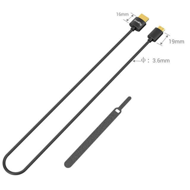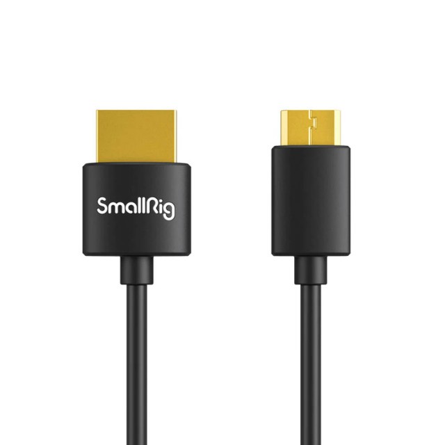 SmallRig Ultra Slim 4K HDMI cable (C to A) with a length of 55cm. The HDMI 2.0 version supports resolutions up to 4K 60HZ Ultra-slim design with 3.6mm outer diameter. Mini HDMI to Full HDMI.