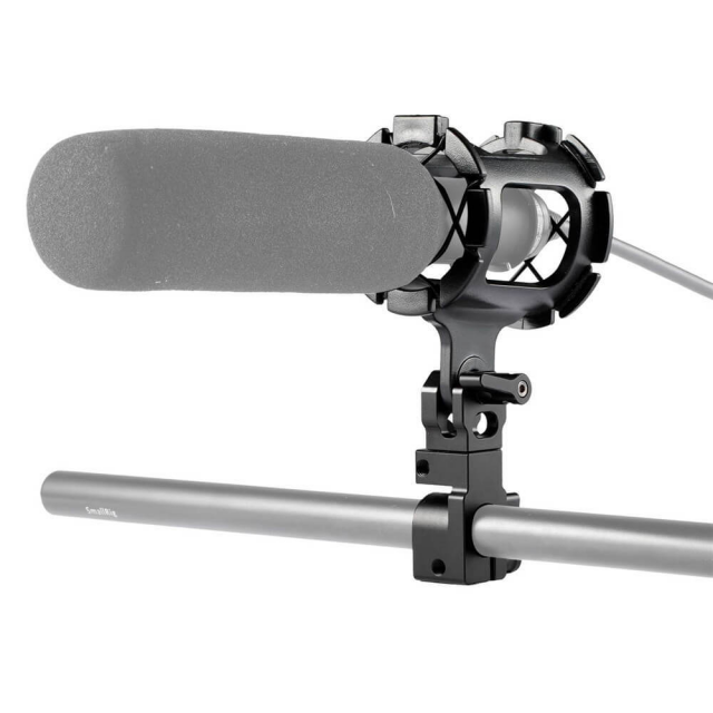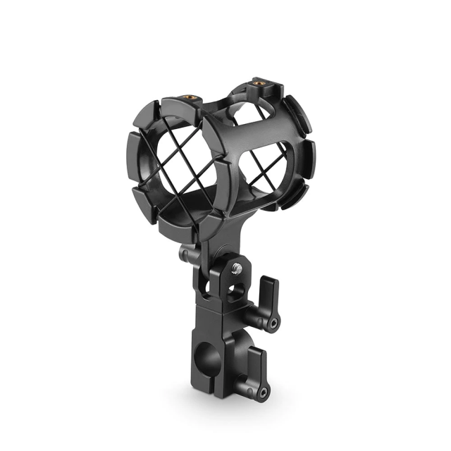 SMALLRIG Universal Microphone Suspension Shock Mount 1802 is designed to help eliminate vibrations and noise. It's quite a different microphone mount compared with other similar products. It connects to 15mm rod with a special rod clamp, which can be rotated horizontally and vertically. It's very flexible, all we do is to maximize its adjustable angle. It can be adapt to any shooting scene. It is made of aluminium alloy, very light and solid. You can mount it on the rod rail, or any other extensional 15mm rods quickly and securely.