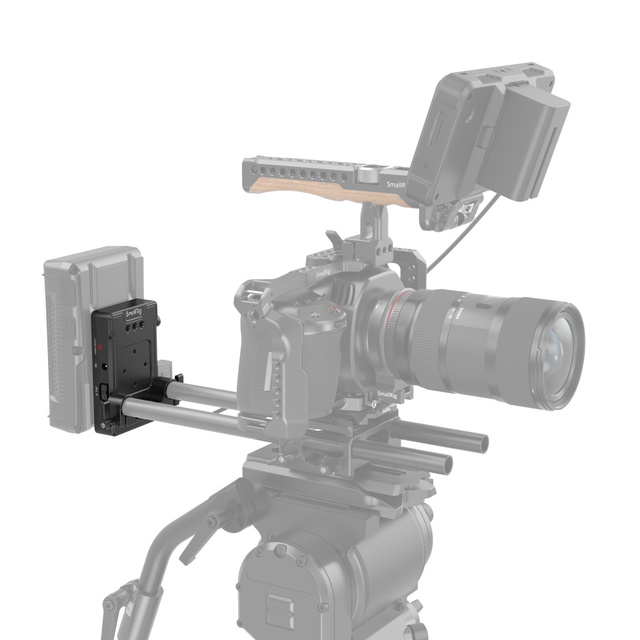 SmallRig V Mount Battery Adapter Plate (Basic Version) with Dual Rod Clamp 3498 is designed to provide greater battery life to your camera rig via a V mount battery. Its standard quick-lock V mount supports most V mount batteries. Output ports, including an 8V DC port, a 12V DC port, and two 14.8V D-Tap ports, work with a V mount battery to power your camera and other equipment (e.g. monitor, transmitter, follow focus, mobile phone, etc.). It features a power switch that controls all of the output ports more quickly and conveniently and comes with a 15mm dual rod clamp that suits a 15mm rail support system. In addition, multiple 1/4”-20 thread holes allow attaching other accessories such as super clamp mount and magic arm.