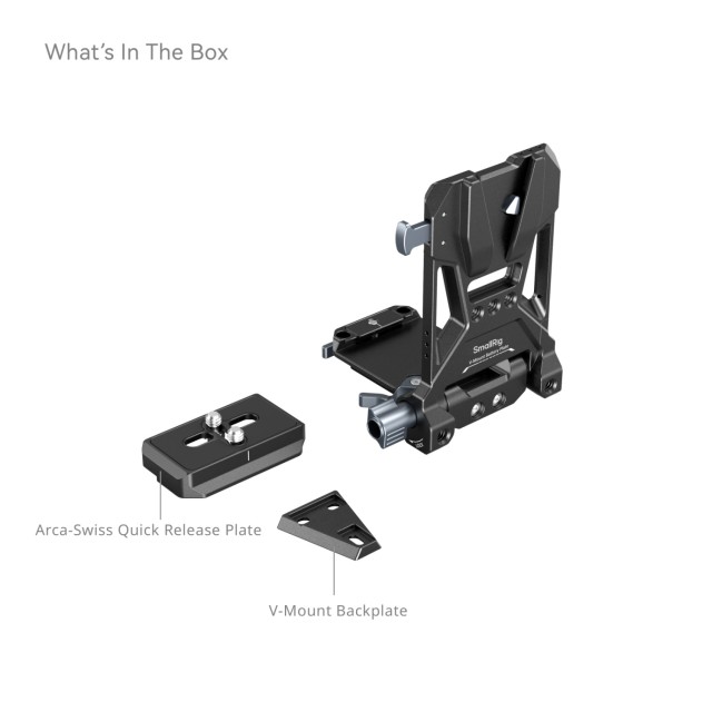 SmallRig V-Mount Battery Mount Plate 4505B is a compact, lightweight, convenient, all-in-one mounting solution for V-mount batteries. The baseplate can be stretched to fit mirrorless / DSLR cameras of various sizes. Tool-free installation and adjustment make the process quick and time-saving. The built-in Arca-type mount plate supports any SmallRig cages with an Arca-Swiss plate.