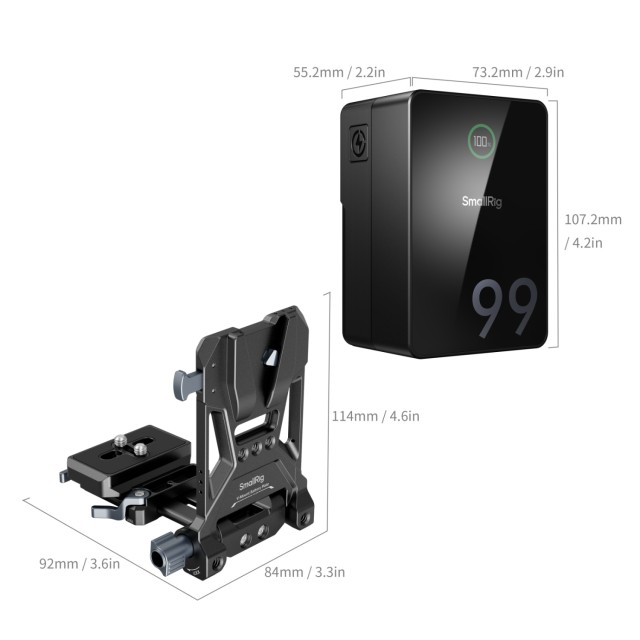 SmallRig VB99 Pro mini V Mount Battery (Kit) 5046 includes the VB99 Pro mini V Mount Battery with the foldable V-Mount Battery Mount Plate, providing a compact and lightweight integrated V-mount battery power solution. This kit stands out for its exceptional compatibility, adapting seamlessly to various devices and shooting environments. Its small size and portable design allow for convenient carrying and storage, providing power solutions to your devices anytime, anywhere.