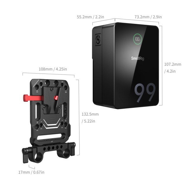 SmallRig VB99 Pro mini V Mount Battery (Kit) 5047 includes the VB99 Pro mini V Mount Battery with the foldable V-Mount Battery Mount Plate, providing a compact and lightweight integrated V-mount battery power solution. This kit stands out for its exceptional compatibility, adapting seamlessly to various devices and shooting environments. Its small size and portable design allow for convenient carrying and storage, providing power solutions to your devices anytime, anywhere.