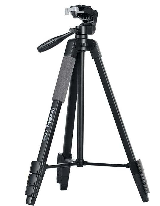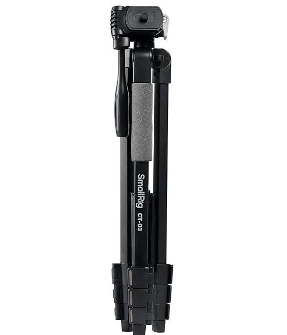 The SmallRig Versatile Lightweight Tripod CT-03 4687 is a compact, outdoor-ready aluminum tripod weighing 677 g (1.49 lb) with a 3 kg (6.6 lb) load capacity, extending from 45 cm to 148 cm (17.7–58.3 in) via 4-section non-circular legs and a center column, featuring a fluid-style video head with 360° pan, +90°/-70°…