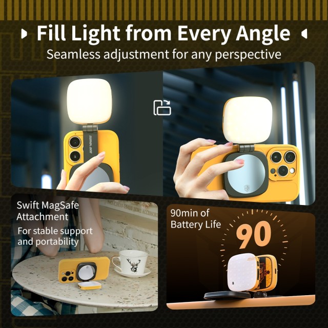· Effortless MagSafe Compatibility: Instantly attach and detach this LED fill light with MagSafe technology, ensuring a secure and hassle-free connection to your compatible devices. · 360° Adjustable Lighting for Perfect Coverage: The innovative mini dual-axis head allows full 360° rotation, offering versatile…