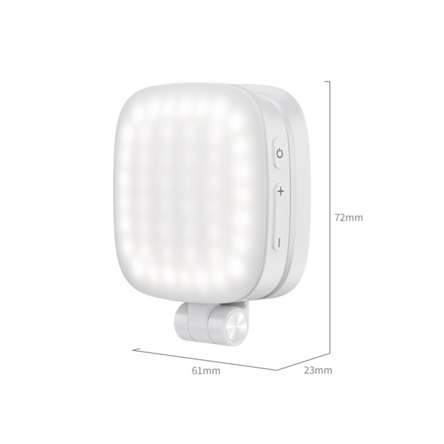 Featuring a built-in mini dual-axis head, this light enables 360° pan and 270° tilt adjustments, ensuring complete 360° fill light coverage. Compact and lightweight, it's akin to a women's powder compact, making it effortlessly portable. The built-in glass mirror instantly transforms the unit into a handy makeup mirror!