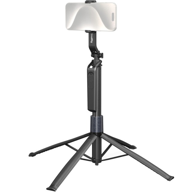 SmallRig Windproof Live Broadcast Stabilizer Stand Encore PT60 4668. The working height ranges from 0.35 to 1.85 meters. The Stabilizer Stand features a unique ground nail design that provides stability for outdoor shooting on rugged terrain, while its extended four-corner support ensures stability on urban surfaces and enhances grip comfort. This product supports adjustable tilt angles, allowing for 360° rotation. The gear structure of the head features a built-in 1/4”-20 screw, ensuring stability and durability. It securely holds various smartphones using a clamp-style method, compatible with phone sizes ranging from 65mm to 97mm. Bluetooth control range of 10m. A 360° rotatable handheld support arm that enhances user experience during device movement and control.