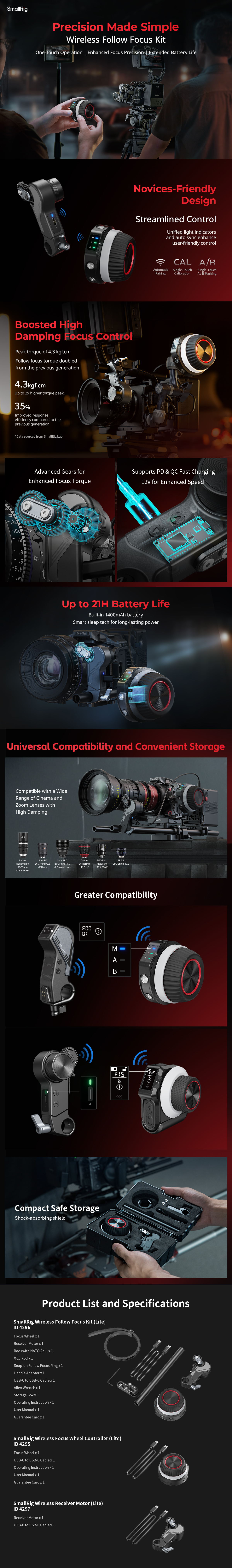 SmallRig Wireless Receiver Motor (Lite) 4297 is designed to provide a high torque and low latency follow focus shooting experience. The motor features red and blue indicator lights to signify connection status and channel (blue light - F00-1; green light - F15-1), offering intuitive and user-friendly operation guidance for simple and efficient control. Operating…