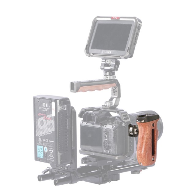 SmallRig Wood Side Handle with ARRI-Style Mount HSS2642 is designed to provide a comfortable grip for increasing stabilization and accessory mounts for cameramen. The handle attaches to the cage or camera rig via an ARRI 3/8“-16 screw with two locating pins. The handle can be configured for right or left Hand by detaching the metal connector. Featuring 3/8”-16, 1/4“-20 and cold shoe accessory mounts on top to add a mounting arm, light, mic or other accessories. The screws attach to a sliding mechanism that allows you to slide the handle up and down for your preferred position. A built-in Allen wrench inside the bottom allows to adjust the handle position and for further secure. The smooth wood handle provides a solid, comfortable grip and it also works well in the situation of low temperature.