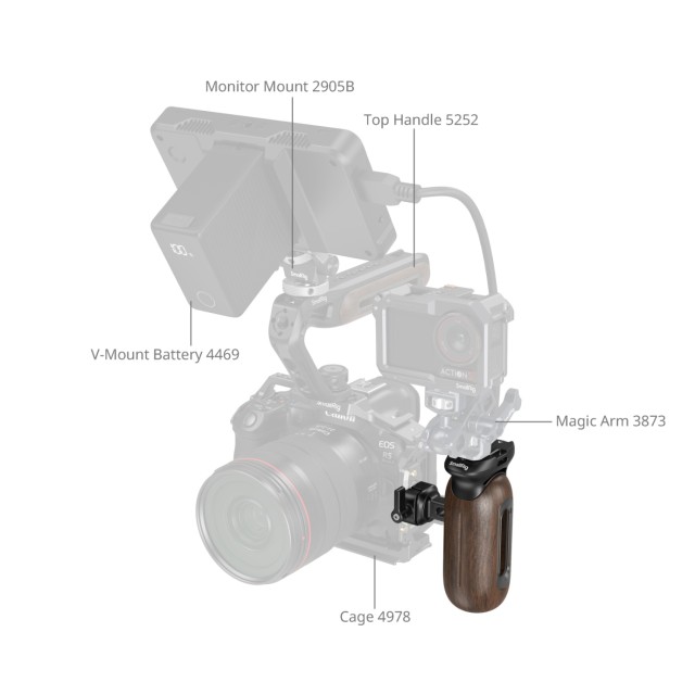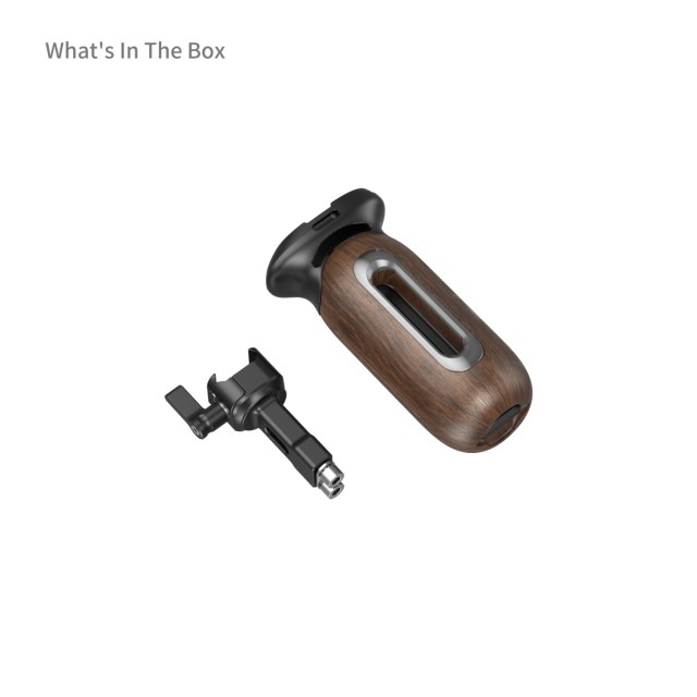 SmallRig Wooden Side Handle with NATO Clamp 5239 is designed for comfortable handheld shooting. It easily attaches to cages featuring a NATO rail using the NATO clamp and is securely tightened with an Allen wrench.
