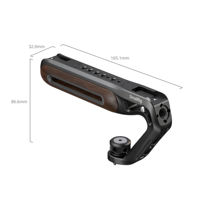 The SmallRig Wooden Top Handle combines premium sandalwood and aircraft-grade aluminum for durable, stable camera operation. Its 165mm ergonomic grip ensures comfortable handling. The sleek capsule design maintains professional aesthetics while offering practical expansion capabilities.