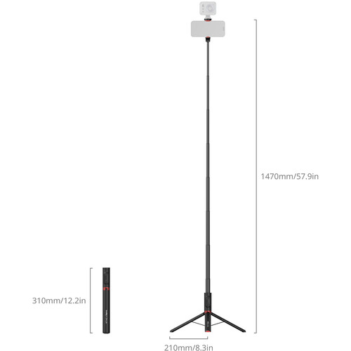 Designed in collaboration with filmmaker Drex Lee, the SmallRig ST30 Lite Boom Selfie Stick transforms from a 31 cm travel-friendly wand into a 147 cm, tripod-stable shooting rig in a single, button-free motion. Its triangular base auto-deploys for instant setup, while anti-slip silicone feet and extendable support legs keep phones up to 1 kg steady on almost any surface. The hidden, wide-grip phone clamp rotates for seamless vertical or horizontal framing, and a built-in cold-shoe mount lets you add a small light or mic. Paired with the detachable Bluetooth remote (10 m range), the ST30 Lite delivers fuss-free selfies, vlogs, and creative shots wherever inspiration strikes.