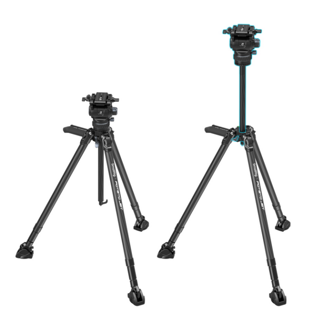 The SmallRig PotatoJet Tribex Hydraulic Carbon Fiber Tripod Kit 4259 is a high-performance tripod kit designed for filmmakers who demand precision and durability. This kit combines a hydraulic fluidic head for smooth and controlled movements and carbon fiber legs for lightweight but sturdy support. The fluid head provides adjustable resistance for both pan and tilt axes, ensuring easy tracking of moving objects and smooth transitions between cameras.