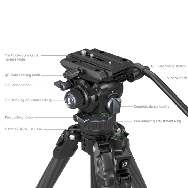 The carbon fiber construction makes the tripod lightweight and easy to carry without compromising strength, and supports maximum load capacity to meet the needs of most professional videographers. The tripod legs feature quick-release locks that allow for quick and secure setup, and the adjustable center spreader bar gives the tripod added stability on uneven terrain. The kit also includes a padded carrying bag for convenient carrying and storage.