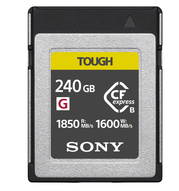 The Sony Tough CFexpress Type B 240GB memory card delivers ultra-fast performance with speeds up to 1850 MB/s read and 1600 MB/s write, designed for professional 4K+ video, RAW burst shooting, and extreme durability.
