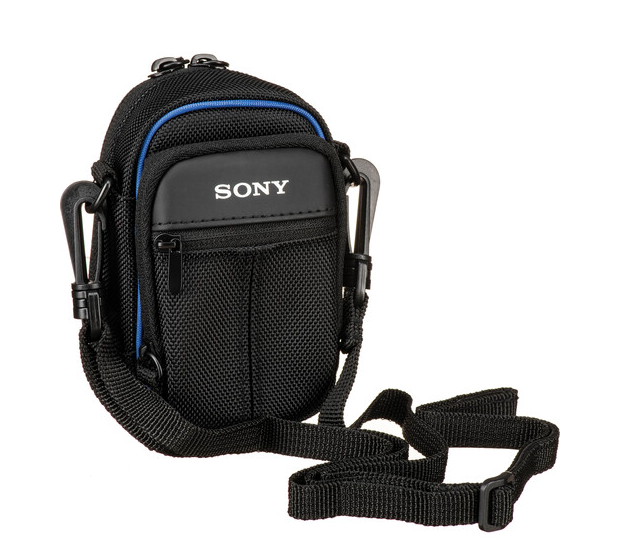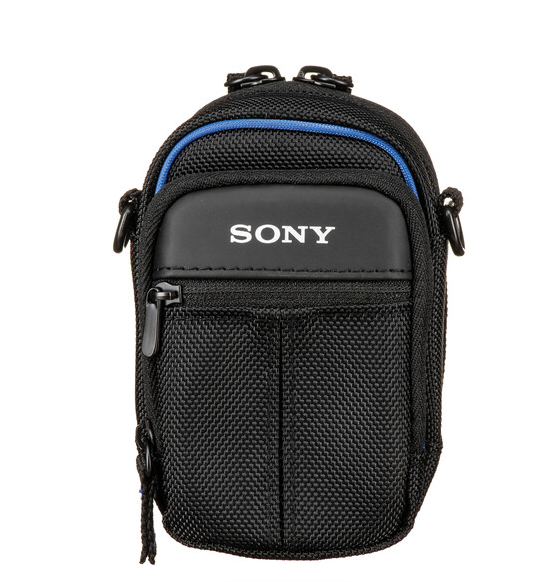 The Sony LCS-CSJ Soft Carrying Case is a compact nylon camera bag designed to protect compatible Sony compact cameras from bumps and scratches while offering convenient storage for accessories.