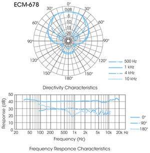 The ECM-678 electret condenser shotgun (super-cardioid) microphone has a wide range and very good sensitivity.