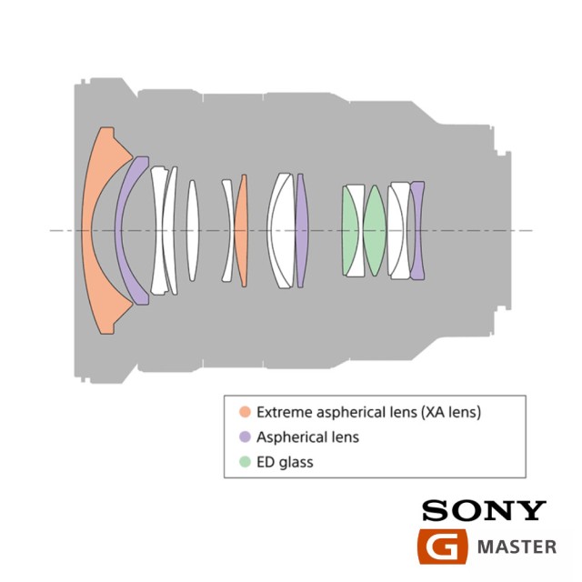 This lens features two Sony XA (extreme aspherical) elements with 0.01 micron surface precision. Distortion that tends to occur in wide-angle zoom lenses is meticulously controlled, as are astigmatism and field curvature. Unattractive onion-ring bokeh is effectively suppressed by XA (extreme aspherical) elements so that smooth, beautiful bokeh is achieved in out-of-focus areas.