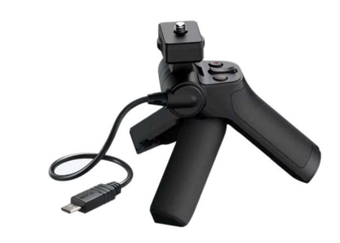 The Sony VCT-SGR1 Photo Grip with Tripod is a versatile shooting accessory designed for RX0 and RX100 series cameras. It functions as both a handheld grip and a compact tabletop tripod, featuring integrated controls for shutter, video recording, and zoom for enhanced shooting convenience.