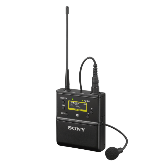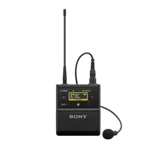 is a wireless bodypack transmitter compatible with the URX-P40 camera-mount receiver. Compact and lightweight, with a robust, all-metal construction, this bodypack is well suited for tough operating conditions, while remaining comfortable for the talent to wear. It provides up to 8 hours of operation on two AA batteries, with a selectable 5/30mW RF power output and a transmission range up to 330'.The UTX-B40 comes with an ECM-V1BMP omnidirectional lavalier microphone optimized for speech. The transmitter has a locking, 3.5mm BMP-type microphone input connector with an adjustable input level to accommodate other compatible lavalier or headset microphones of your choice. The transmitter offers a 72 MHz bandwidth with 2772 selectable UHF frequencies.