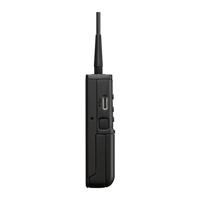 The lightweight and compact bodypack transmitter is supplied with a lapel microphone with spherical characteristic. The UTX-B03 transmitter transmits on the UHF band. It is ideal for news purposes, doing interviews, talk shows and conferences.